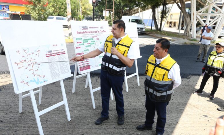 La modernización de la avenida 24 Sur continúa como parte de las acciones para fortalecer la infraestructura urbana en la capital poblana.