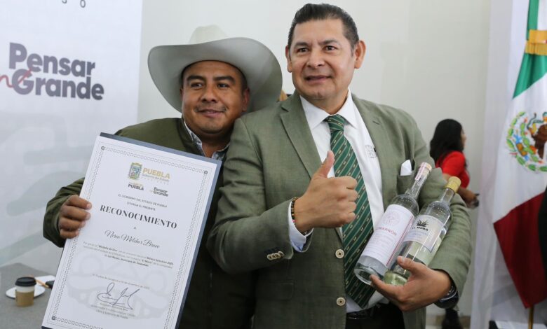 CIUDAD DE PUEBLA, Puebla.- Al entregar reconocimientos a las y los 35 maestros mezcaleros que triunfaron en el Concurso Nacional México Selection 2025, el gobernador Alejandro Armenta subrayó que las y los productores son un orgullo para las y los poblanos, ya que son “mezcaleros de alto rendimiento”, pues son producto del amor al agave.