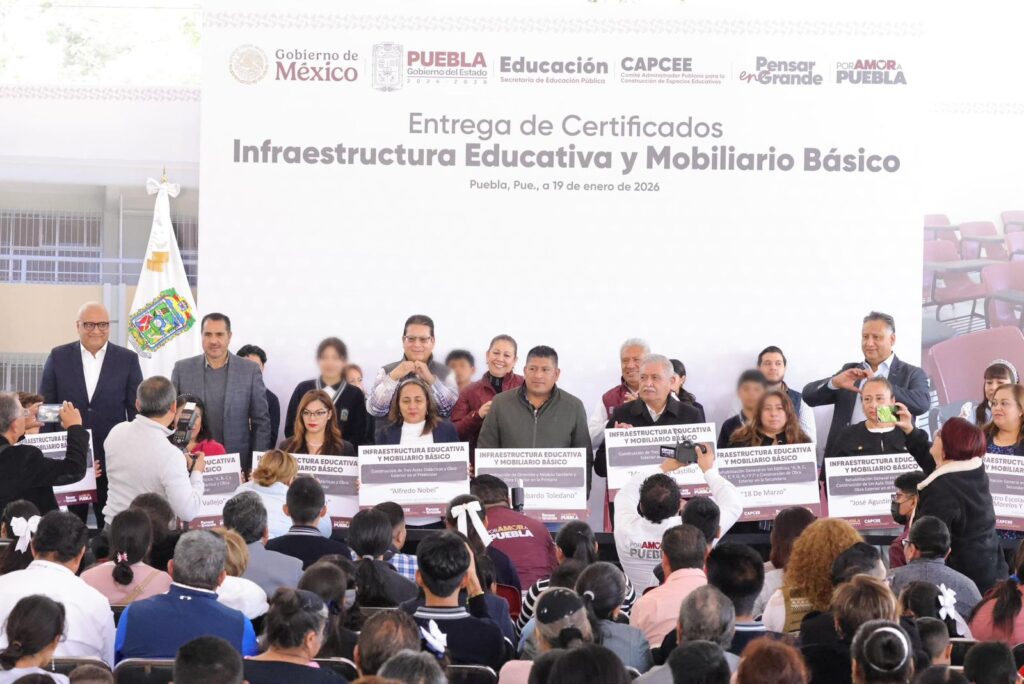 Con la entrega de 46 certificados de Infraestructura Educativa y 104 de Mobiliario Básico en el Centro Escolar José María Morelos y Pavón, el Gobierno del Estado reafirmó que la educación es una prioridad para el gobernador Alejandro Armenta, señaló la secretaria de Bienestar, Laura Artemisa García Chávez, al destacar que estas acciones impulsan la dignificación de los espacios escolares en Puebla, con una inversión total cercana a los 122 millones de pesos.