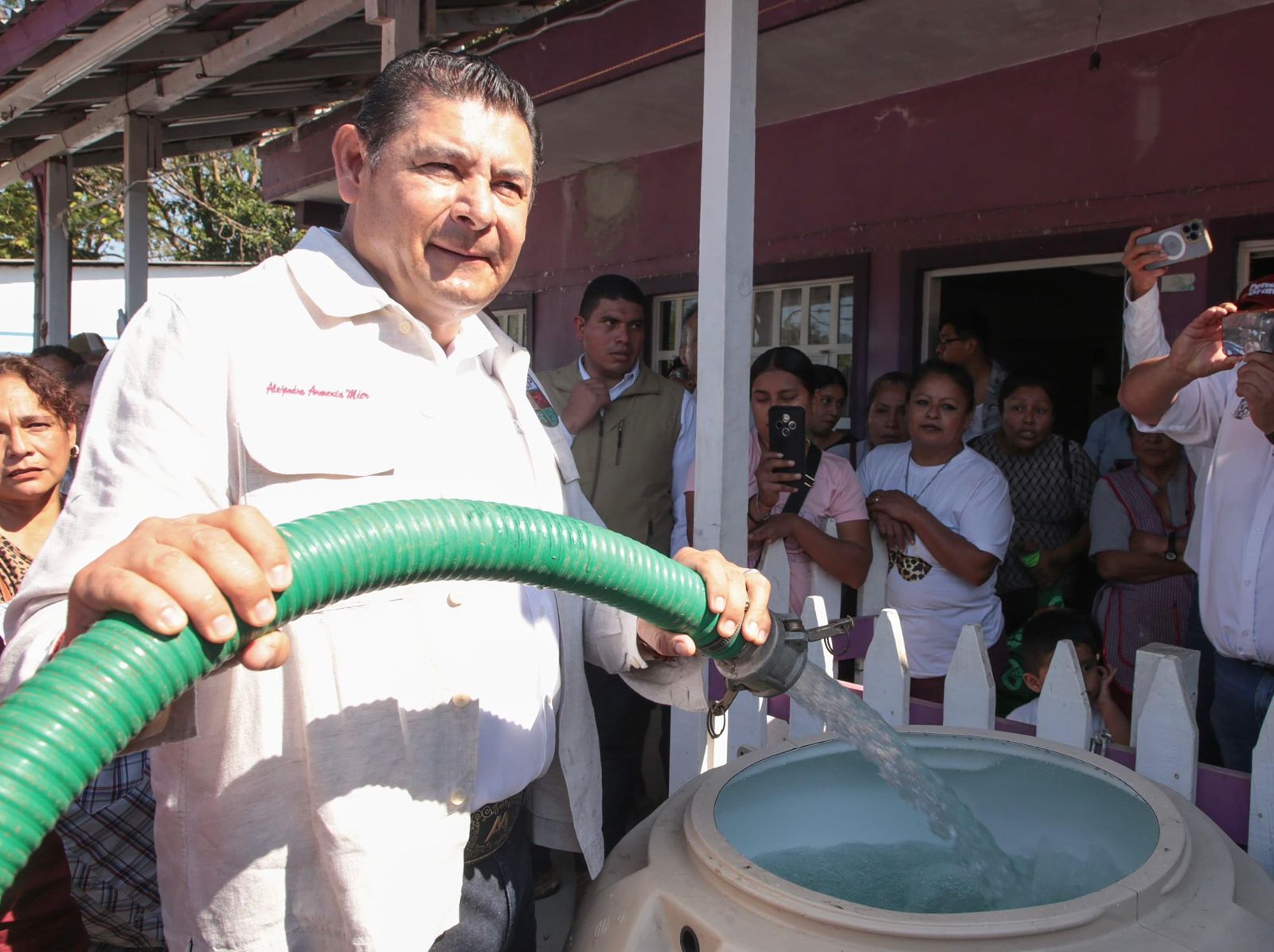 Durante su recorrido por las comunidades de La Ceiba y Gilberto Camacho “La Junta”, el mandatario verificó la entrega de 500 tinacos donados por PEMEX y los trabajos que forman parte del proceso de recuperación de la zona.